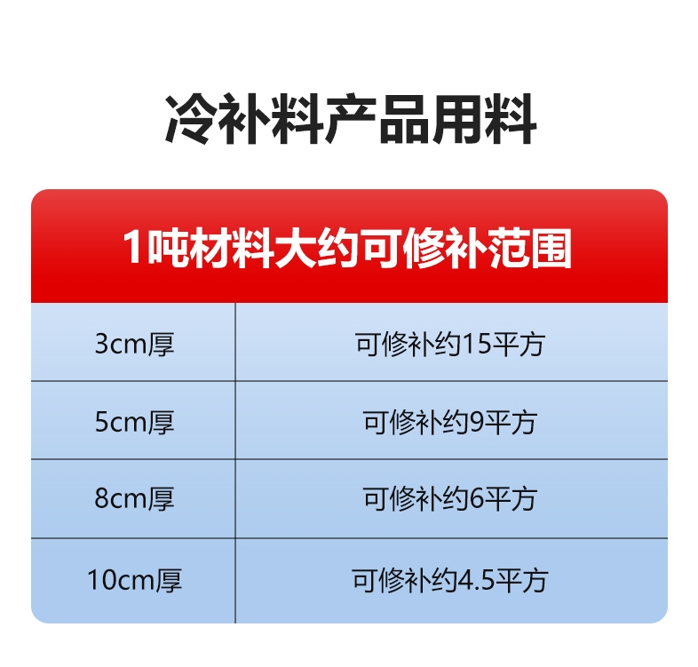 2、性能稳定:冷补料有极强的抗老化性能,修补的坑槽寿命在6个月以上,并不易产生龟裂等不良现象;
