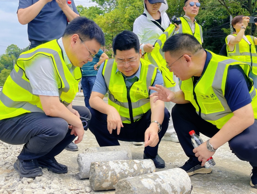 广东省公路事务中心在平江县G106大修工程考察调研普通国省道“四新”成果推广应用工作